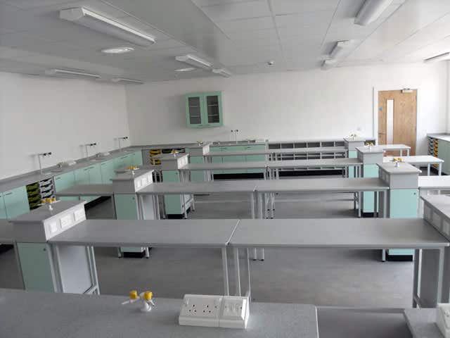 This school project was to install and supply furniture for six laboratory classrooms and additional prep rooms, on this project we used LAB20 solid surface worktops to match existing classroom facilities.